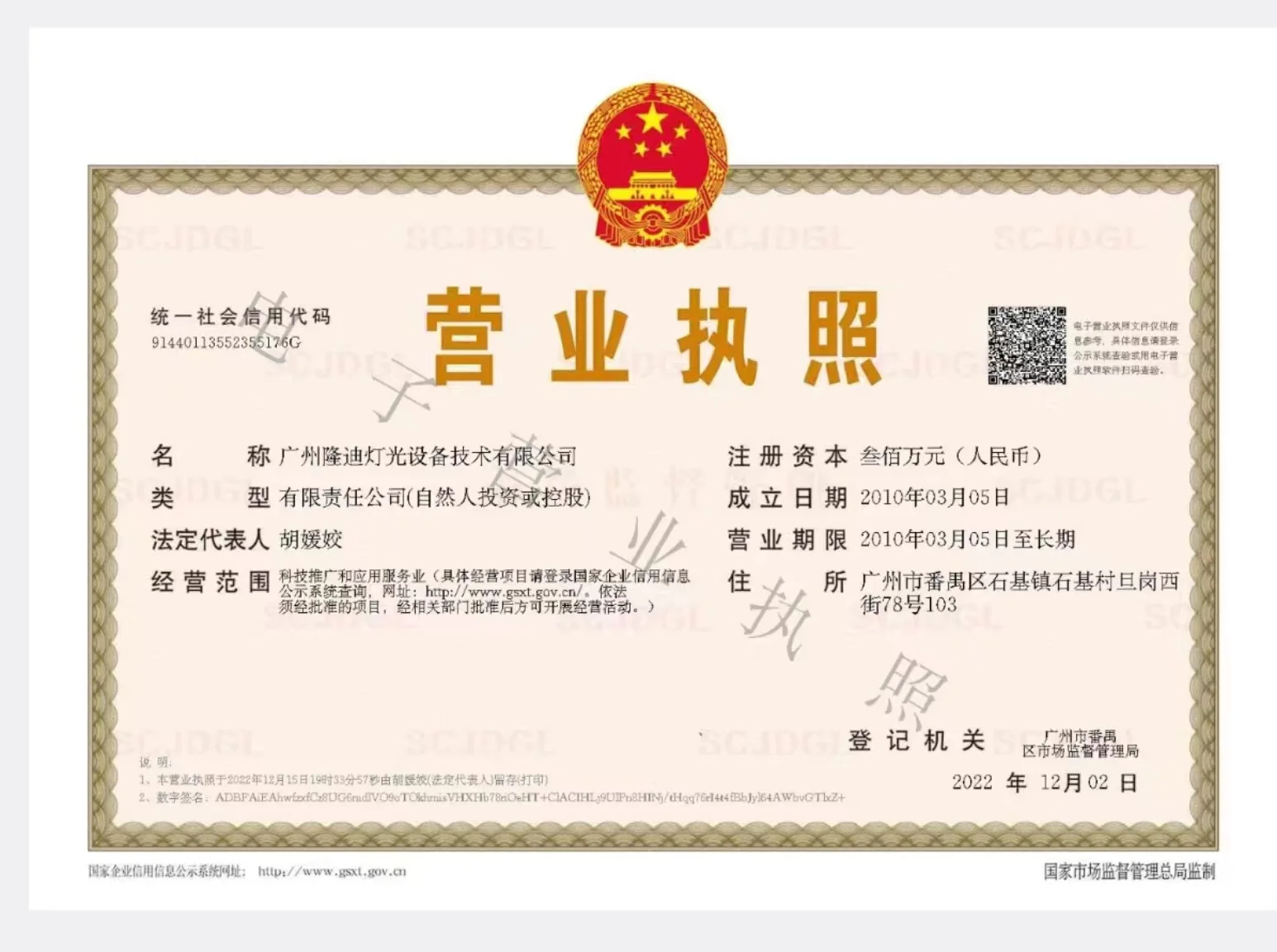 Registered address : 103, No. 78, Dangang West Street, Shiji Village, Shiji Town Guangzhou Guangdong China